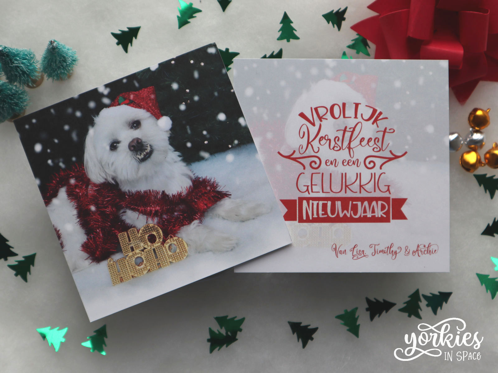 Vrolijk Kerstfeest! Ik hoop dat iedereen schitterende feestdagen mag beleven, en als het even tegenzit dat de kerstlichtjes de donkere dagen kunnen opfleuren. En als die lichtjes niet genoeg zijn, dan hoop ik dat Archie op zijn minst een lach op je gezicht kan brengen, want vandaag deel ik ons kerstkaartje waar hij in de spotlight staat.