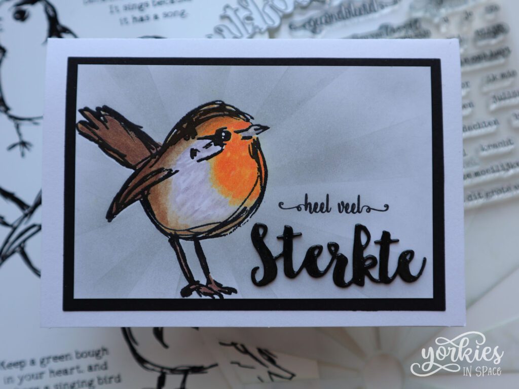 Ook ik deelde op de uitvaart mijn stukje, mijn eigen versie van Julien, dat in mijn hart verder leeft. Die van de liefdevolle opa die zo kon genieten van de vogeltjes in de tuin. Dat probeerde ik ook te vertalen naar het rouwkaartje. Vandaar de keuze voor een roodborstje. Als hij er eentje zag, werd hij daar meteen gelukkig van. De rode borst doet ook aan liefde en warmte denken. Hij zou het een mooi kaartje gevonden hebben.