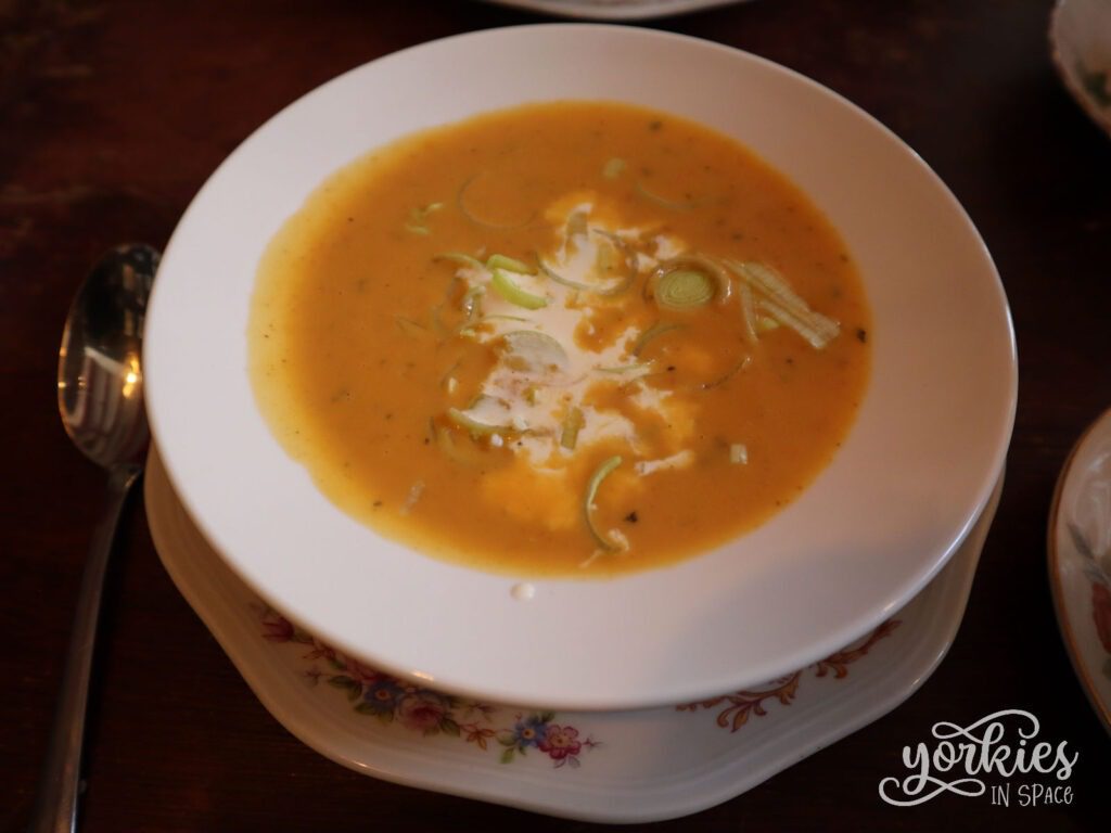 Je kunt ook kiezen tussen twee soorten, de “Classic High Tea” voor €25 p.p. of de “Royal High Tea” voor €30 p.p., waar ietsje meer in zit. Omdat de duurdere versie een soepje bevatte, koos ik voor die. Zelf ben ik geen zo’n soepeter, maar ik weet dat Timothy zijn buik liever niet met enkel zoetigheden vult als middageten.