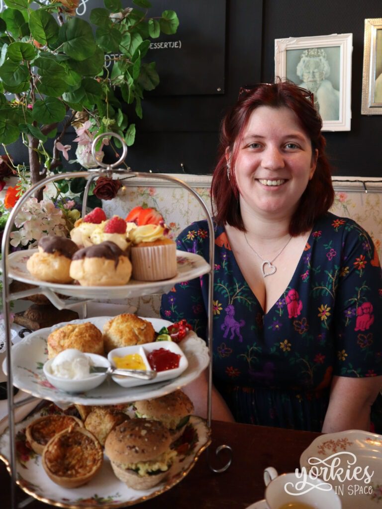 Het was uiteindelijk dus niet écht een ‘high tea’, ook al noemt het zo op de website, want het was eerder een assortiment aan lekkernijen dan een stevige maaltijd. Maar écht een afternoon tea kun je het ook niet noemen, omdat er wel een soepje bij zat en we het niet echt in de afternoon deden. Maar dat doet er allemaal niet toe, ik wilde gewoon eens thee met zo’n etagère aan lekkernijen gaan doen, en dat was het absoluut wel!
