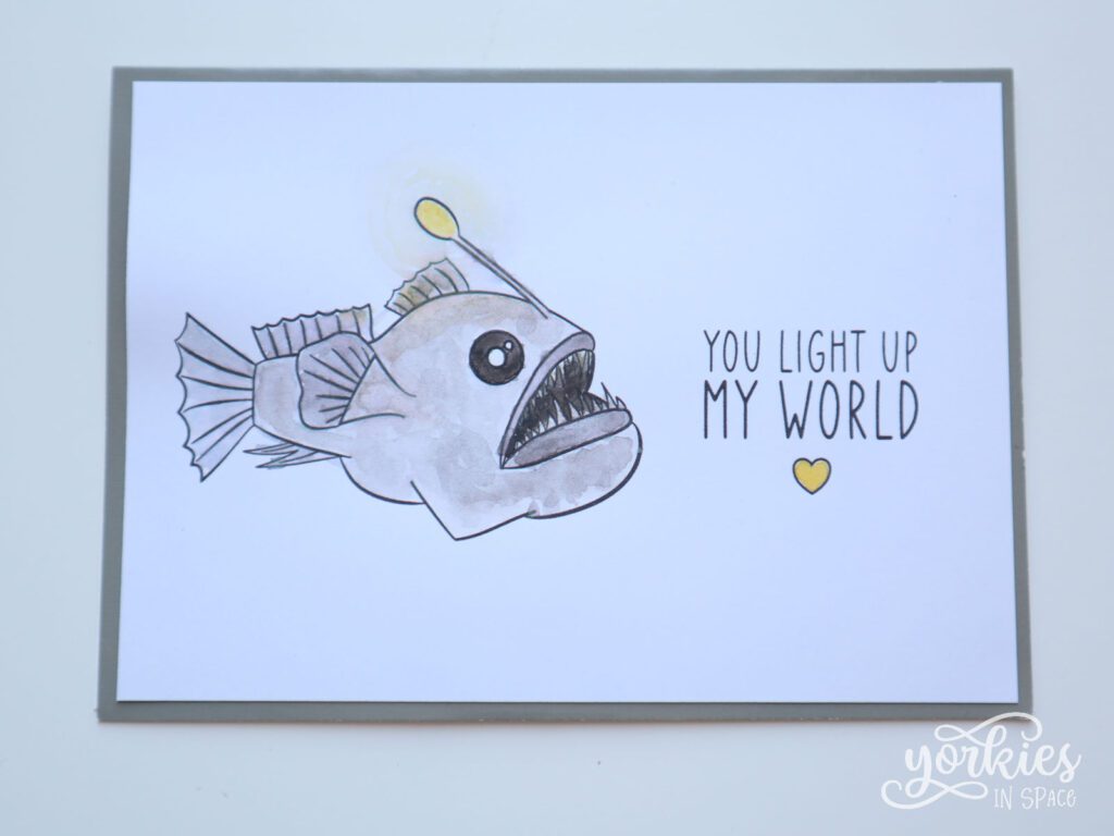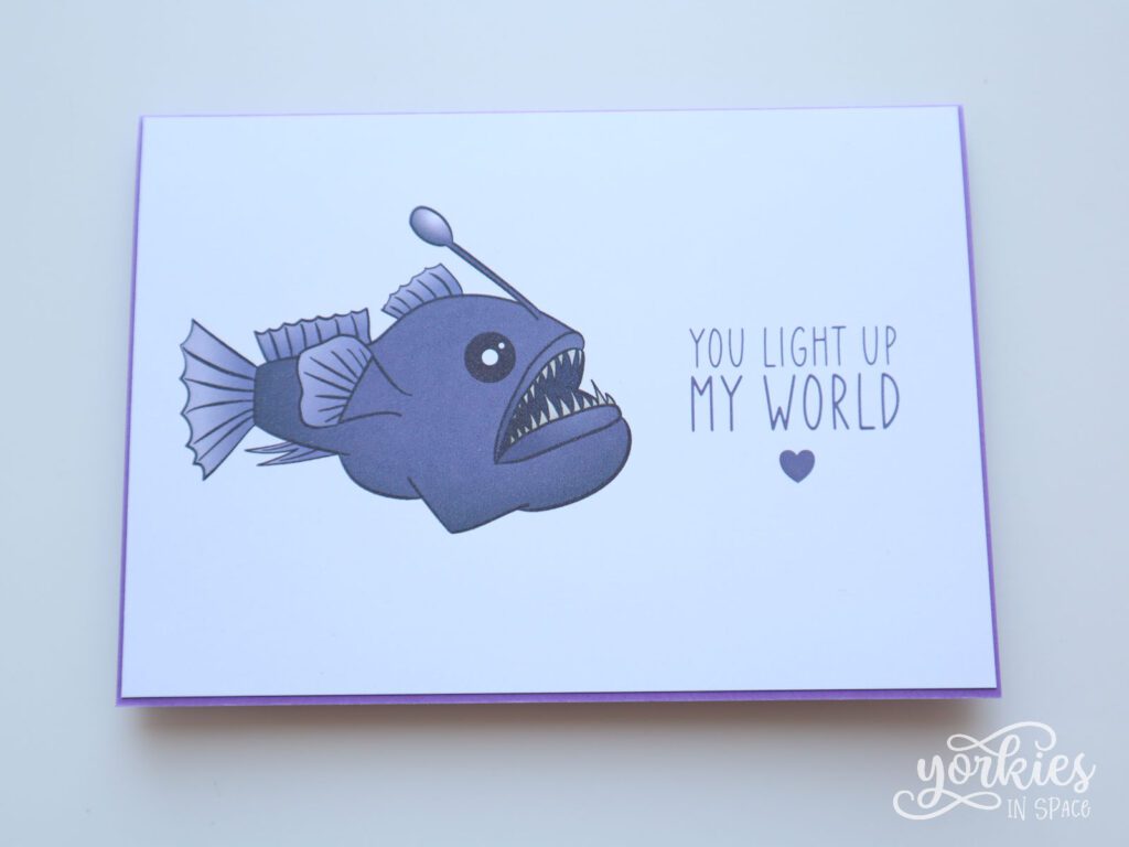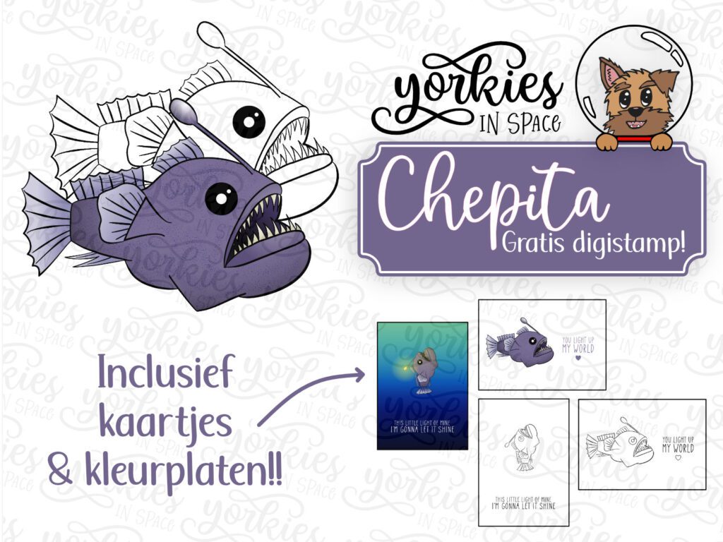 Ter ere van de zwarte zeeduivel (anglerfish) die voor de kust van Tenerife gefilmd werd toen ze verticaal naar de oppervlakte van de zee zwom, maakte ik deze set. Scroll naar beneden om de digistamp en de kaartjes te downloaden, en lees verder om meer te leren over deze zwarte zeeduivel en waarom ik haar Chepita genoemd heb.