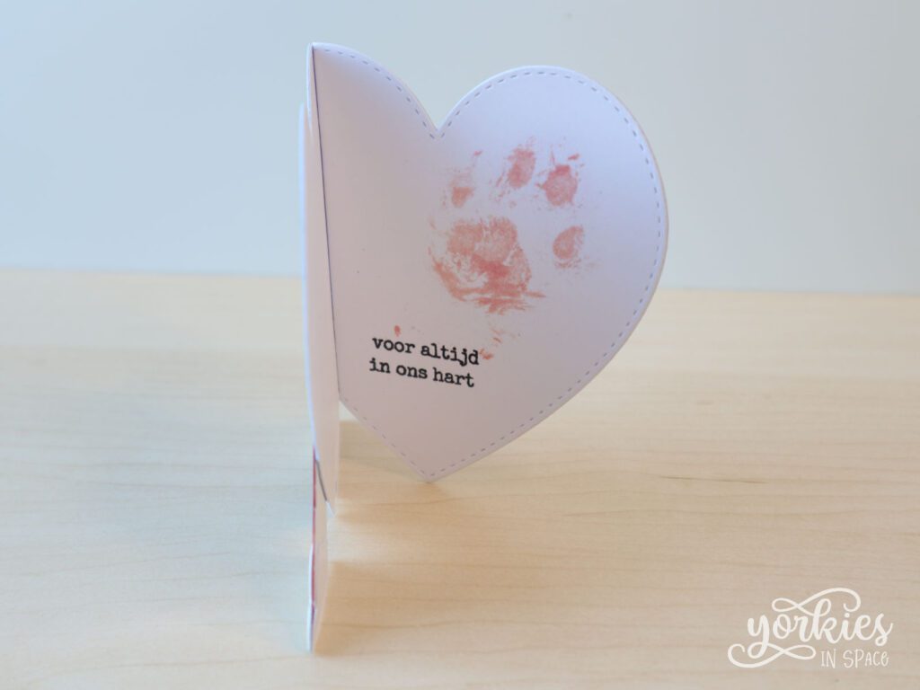 De beste manier om mijn emoties te verwerken, is meestal door me creatief bezig te houden. De dierenarts was zo lief om een pootafdrukje van Tijger te nemen, en de dag van het afscheid legde ik mijn focus op het vereeuwigen van dat pootafdrukje. Ik scande het in en digitaliseerde het, zodat we het niet zomaar kunnen verliezen. Ik zorgde er ook voor dat ik het op ware grootte kan afdrukken. Ik zou graag een bedeltje laten maken met zijn afdrukje in gegraveerd, maar voor nu maakte ik eerst een kaartje.