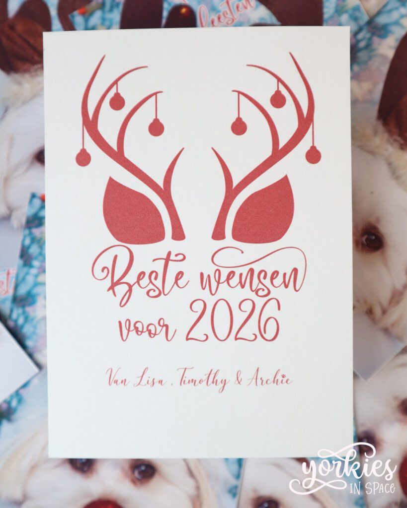 Net als vorig jaar drukte ik de kaartjes opnieuw zelf af op fotopapier. Deze keer gelukkig met veel minder problemen, én mooi op tijd. Ik heb alvast wat ideetjes voor ons kerstkaartje voor volgend jaar, maar dat moet dus nog 11 maanden wachten. Intussen kun je je hieronder inschrijven voor de nieuwsbrief of yorkiesinspace volgen op social media als je op de hoogte wilt blijven van nieuwe knutselideetjes. Wil je liever meer zien van Archie? Bezoek dan hier Archie zijn eigen hoekje van de website en je vindt hem ook terug op social media!